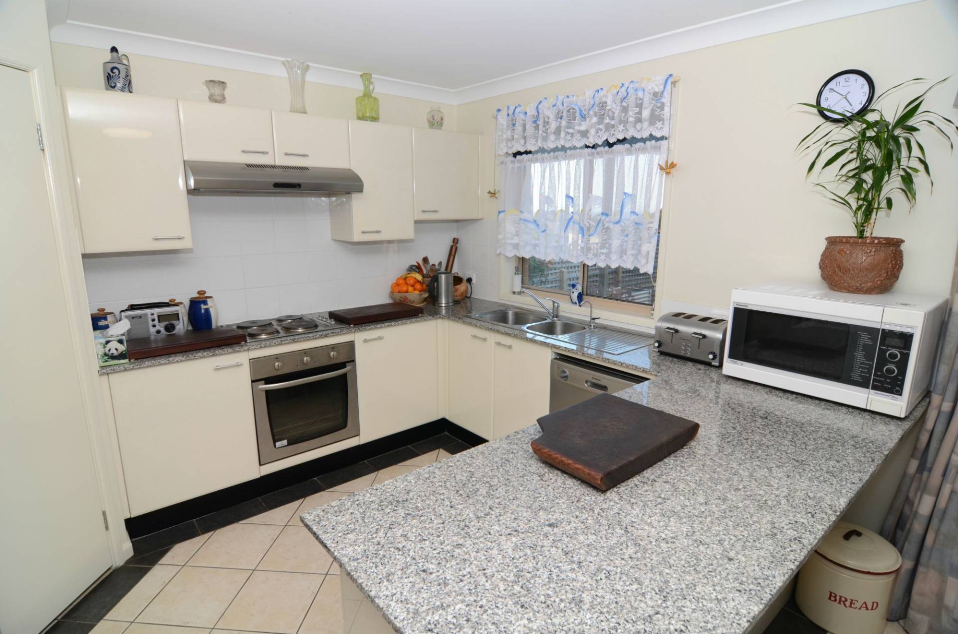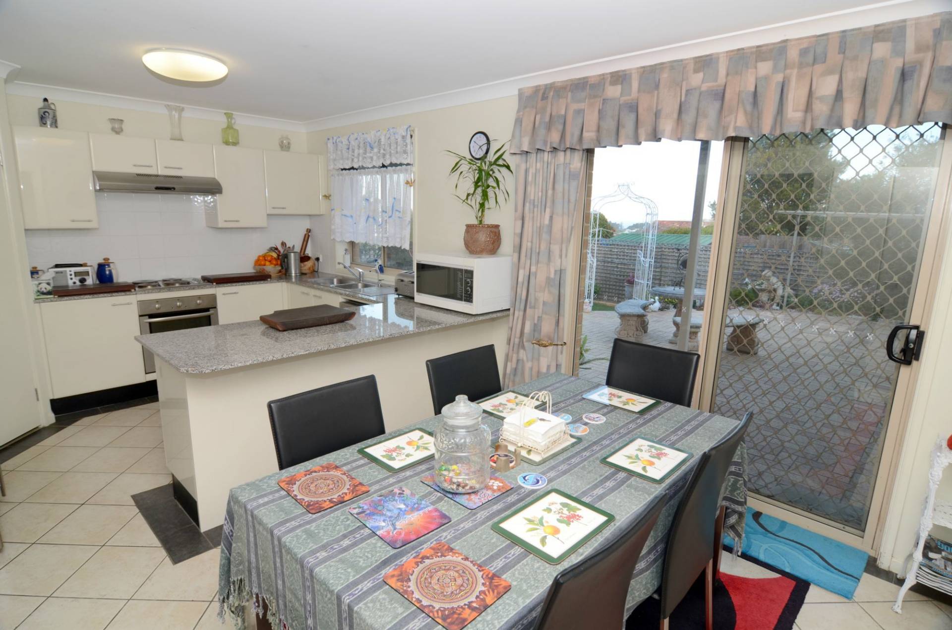 Spacious lounge, beautifully presented granite top kitchen, built-ins in all bedrooms, 3 way main bathroom and en suite to the master. Views from both the downstairs fully fenced and landscaped backyard and the upstairs tiled balcony looking across the bay to Boyd's Tower and beyond. Reverse cycle air con, remote lock-up garage, covered rear patio, 3 internal toilets, garden shed, water tank for the gardening and much more!