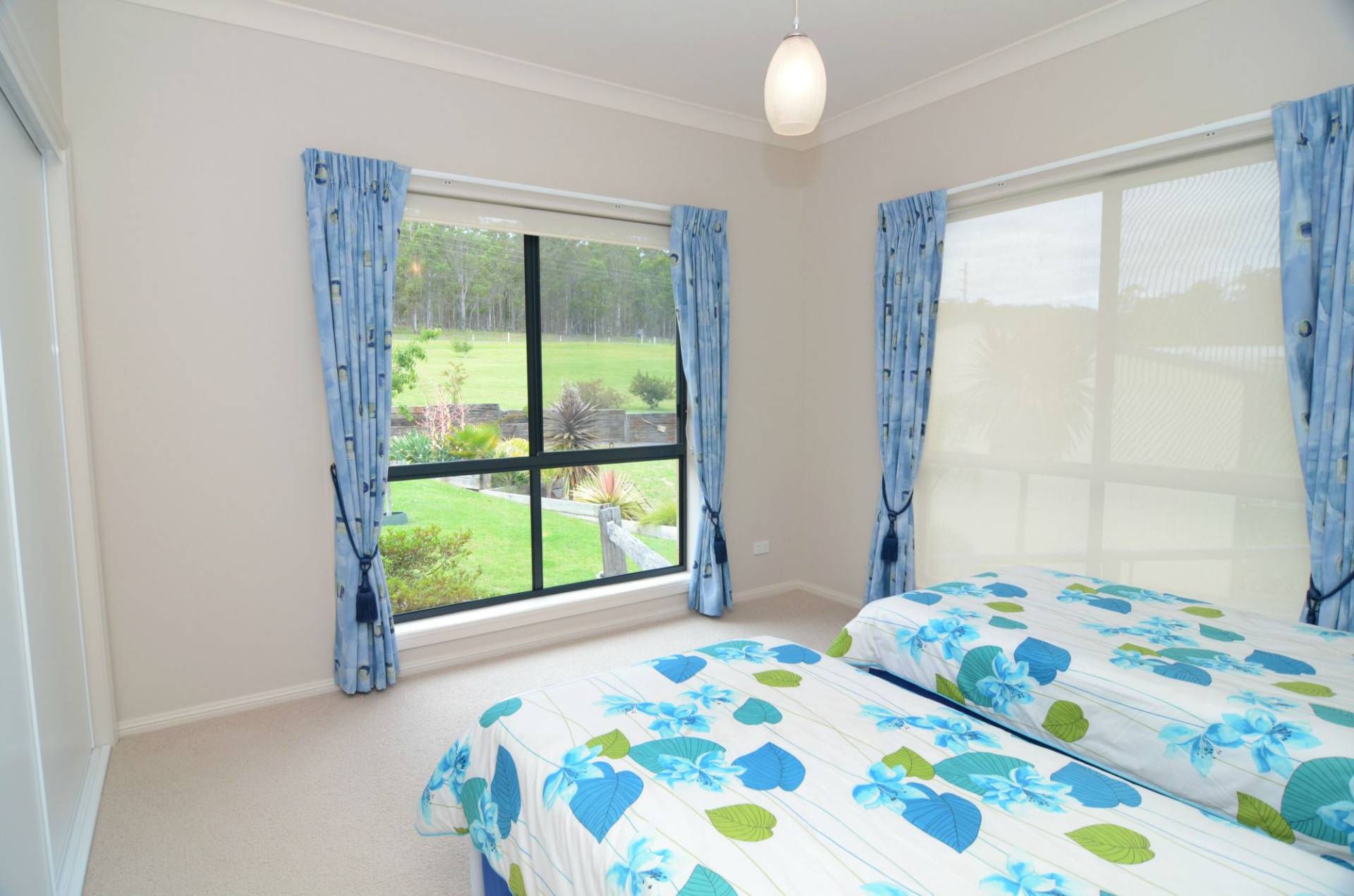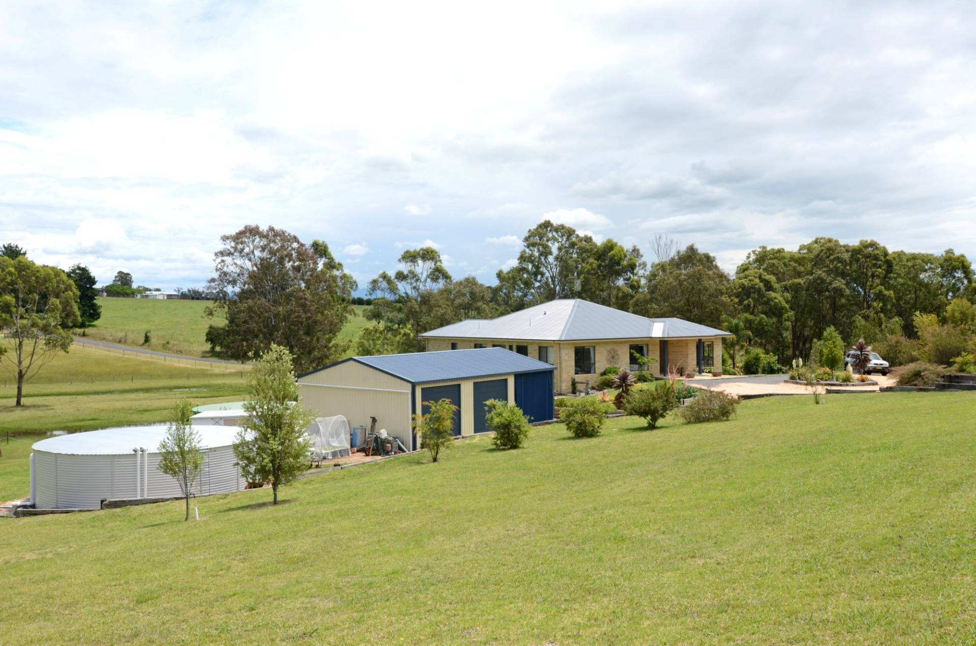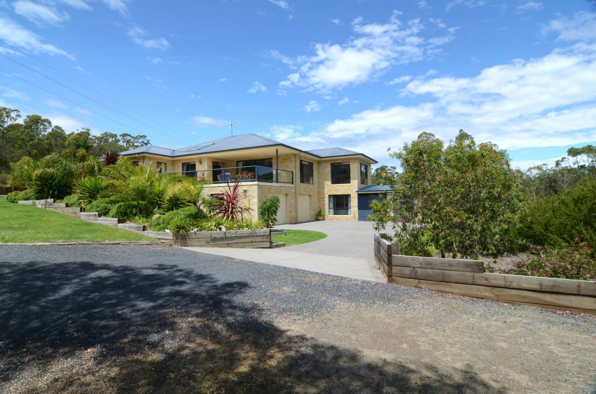 The acreage is gently sloping with superb landscaped gardens about the house and a small delightful wetland area. Fully fenced with sealed road frontage on two sides and dual gate entries, all located just 16km (roughly 10mins drive) from Bega or Merimbula.